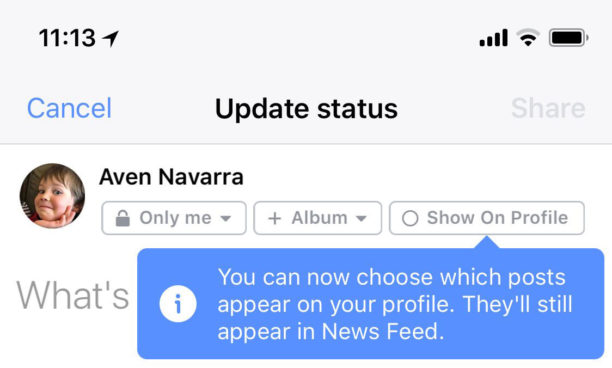 Facebook : des partages uniquement visibles sur le fil d’actualité (masqués sur le profil) ?