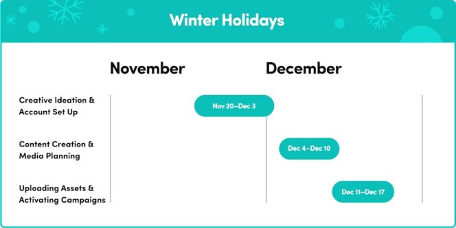 Une version de ce planning existe également pour la période octobre-novembre consacrée à l’automne et aux festivals, et un calendrier dédié aux fêtes du nouvel an est aussi disponible sur le site TikTok Business.