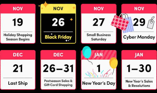 Les plateformes sociales, comme TikTok ou Pinterest, recommandent de se démarquer au plus tôt pour occuper le devant de la scène, faire parler de votre marque et communiquer sur vos offres promotionnelles. Dès le mois d’octobre, votre présence en ligne doit être optimisée à travers des campagnes marketing et l’intégration de votre catalogue en ligne, pour capter l’attention des internautes en quête d’inspiration et qui sont en train de construire leurs listes d’achats. En novembre, c’est le moment de passer à la vitesse supérieure en ciblant les tendances de recherches pour stimuler les ventes au bon moment, avec en point d’orgue le Black Friday et le Cyber Monday.