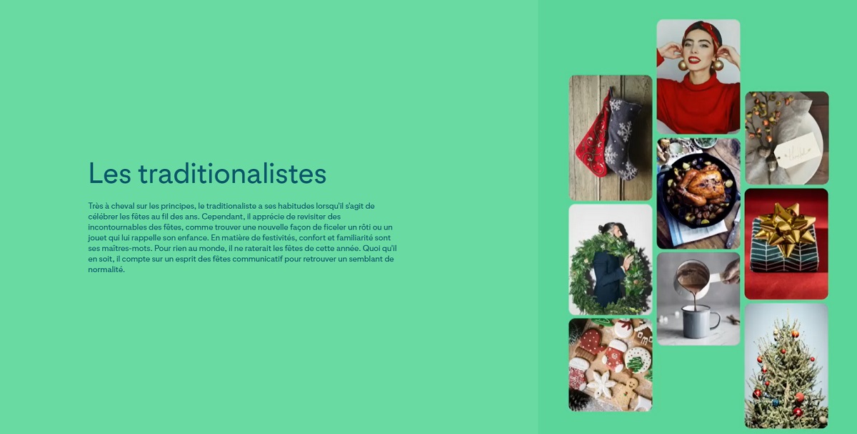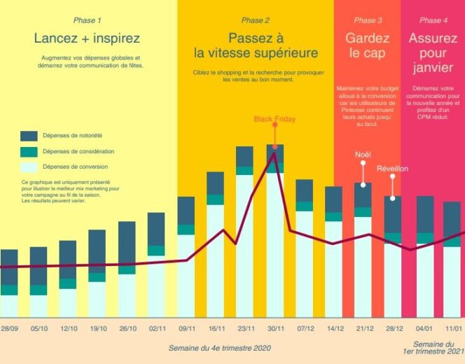 En décembre, il s’agit de garder le cap en maintenant le budget de vos campagnes car les cyberacheteurs effectuent leurs achats en ligne jusqu’à la dernière minute ! Pour engager vos communautés et les inciter à la conversion, vous pouvez par exemple indiquer les produits sur le point d’être en rupture de stock ou encore utiliser des CTA clairs et en gras. En janvier, redémarrez de nouvelles campagnes pour continuer d’assurer votre présence. Pinterest note que les annonceurs permanents obtiennent un taux de conversion 5,2 x supérieur aux annonceurs ponctuels, selon des données internes mondiales fournies par la plateforme.