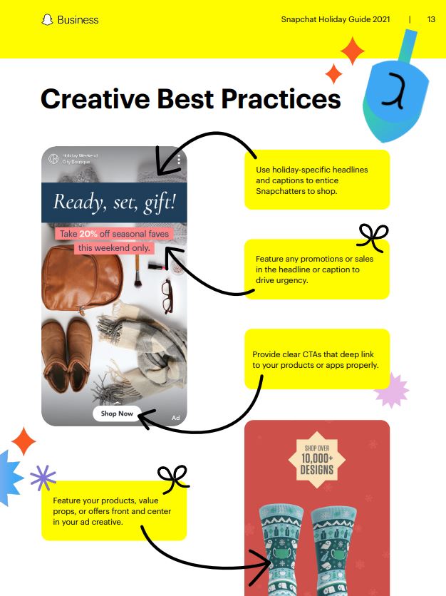 - Utilisez des titres qui font référence aux traditions des fêtes de fin d’année, en jouant sur l’émotion suscitée par cette période en vue d’inciter les Snapchatters à acheter vos produits,