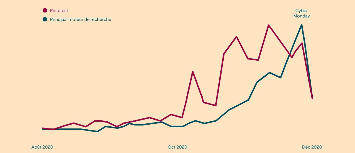 Avec plus de 450 millions d’utilisateurs mensuels en quête d’inspiration et de nouvelles idées, Pinterest représente un réseau incontournable pour la saison des fêtes. En anticipant au plus tôt vos campagnes sur la plateforme, vous avez ainsi la possibilité de toucher une communauté qui a tendance à planifier de plus en plus tôt ses achats pour les fêtes de Noël. Selon une analyse interne mondiale, le nombre de conversion est multiplié par 4,7 lorsque l’exposition aux publicités Pinterest pour ces fêtes a été réalisée de manière précoce pour les utilisateurs.