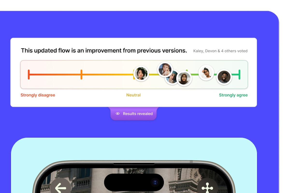 « Quand je fais une présentation, je m’arrête souvent pour poser des questions et voir comment l’audience réagit mais, la plupart du temps, il n’y a pas de réponse, raconte Mihika Kapoor. Dans Figma Slides, nous avons intégré des sondages, des réactions et plus encore pour maintenir l’audience engagée. » Ainsi, en temps réel, les designers présentant leurs projets et avancements peuvent obtenir rapidement des avis sans nécessiter de prises de parole de la part de l’audience. Mihika Kapoor ajoute : « En tant que product manager, une des plus grandes luttes que j’aie est de constamment courir après mes parties prenantes pour obtenir leur alignement. Nous avons donc intégré des échelles d’alignement dans Figma Slides. » Celles-ci permettent également d’obtenir des feedbacks rapides, en se positionnant sur une échelle d’approbation ou de validation.