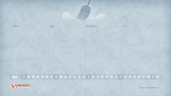 Un fond d’écran sympa créé pour Smashing Magazine, conçu pour l’année 2012. Il suffit de considérer les jours grisés comme des lundis, et le tour est joué ! A télécharger sur Smashing Magazine.