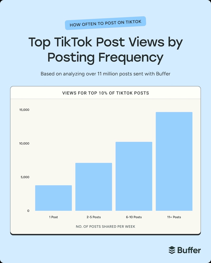 11,4 millions de publications ont été analysées pour estimer la fréquence de publication idéale sur TikTok. © Buffer