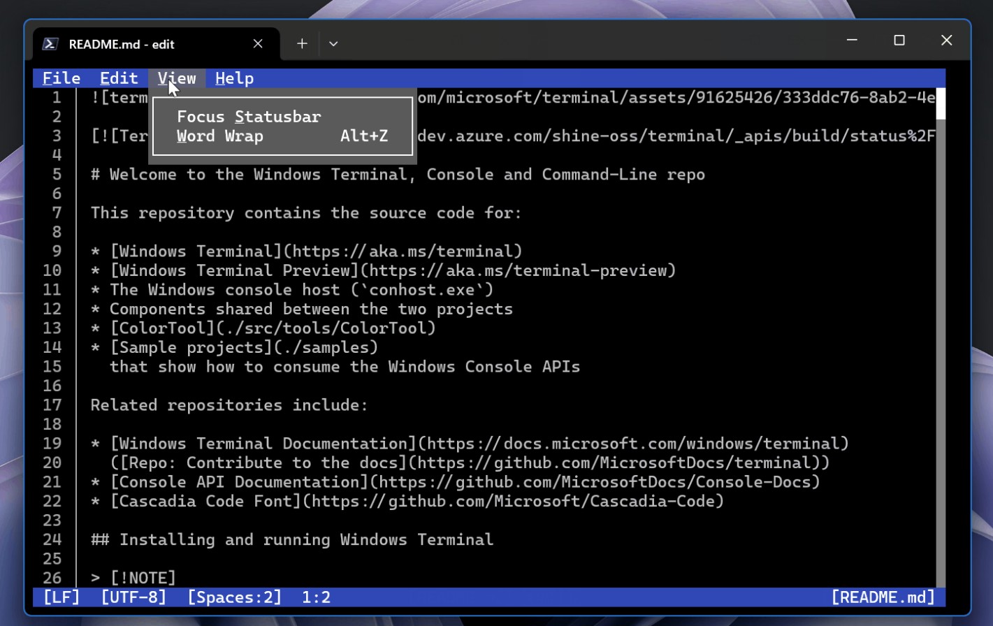 - Un nouvel éditeur de texte : une nouvelle interface en ligne de commande (CLI) pour Windows 11, intitulée Edit, a été annoncée. Celle-ci, open source, propose des raccourcis clavier, la gestion de plusieurs fichiers, une fonction de recherche/remplacement et le retour à la ligne.