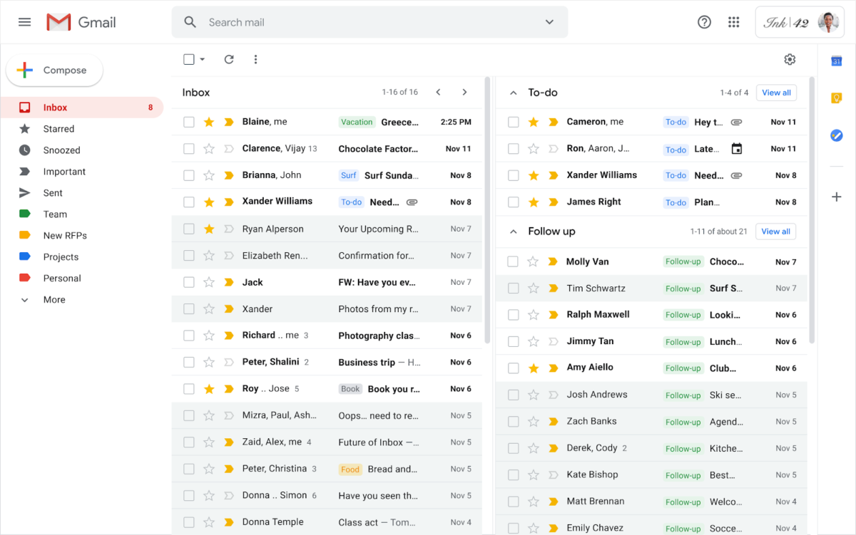La mise à jour de Gmail permet de faire défiler différentes sections de manière indépendante, avec une boîte d’outils unifiée, pour mieux gérer les éléments affichés dans votre boîte de réception.