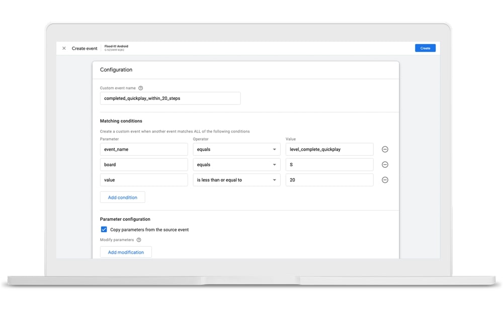 Dès aujourd’hui, vous pouvez créer et modifier des événements depuis l’interface de Google Analytics sans mettre à jour le code : modifiez le nom de l’événement, les paramètres, ou créez de nouveaux événements simplement.