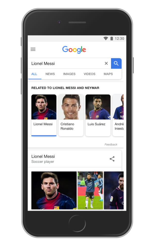 Autre nouveauté, la prise en compte de l’ensemble de vos recherches pour le contenu suggéré. Objectif : vous proposer des sujets dans la même veine que vos recherches successives. Si par exemple vous faites une recherche sur les joueurs de football de la prochaine Coupe du Monde et que vous cherchez Messi puis Neymar, vous obtiendrez des résultats similaires portants sur d’autres joueurs afin d’aller plus loin que votre recherche initiale.