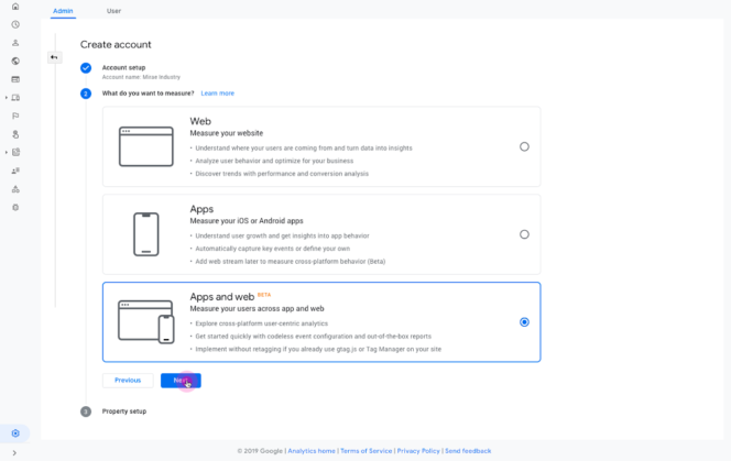 Google Analytics propose actuellement deux types de propriétés : site web (via Universal Analytics) et applications mobiles (via Firebase). Vous devez choisir l’un ou l’autre lorsque vous définissez une nouvelle propriété sur un compte Google Analytics. Les professionnels qui suivent leur trafic web et l’usage de leur application mobile sont donc contraints de créer deux propriétés distinctes pour suivre l’activité sur leurs plateformes. Ce n’est pas idéal pour suivre l’usage global de son site et de ses applications.