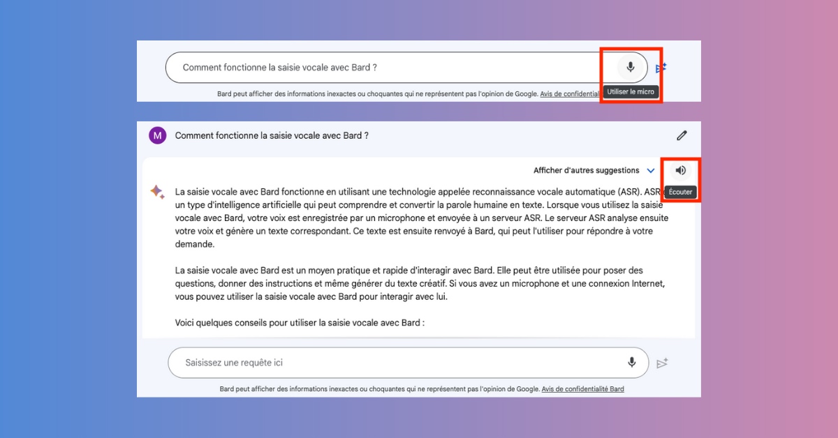 3. Utiliser la saisie vocale pour vos prompts et écouter la réponse de Bard