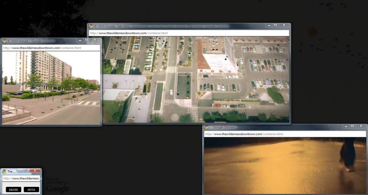 « The Wilderness Experiment » promet d’exploiter les possibilités du HTML5, à condition bien sûr de le lancer à partir d’un navigateur supportant bien le code – Chrome en tête, bien évidemment. L’expérience commence avec la rue où vous avez grandi : entrez là, et le clip l’intégrera grâce à Google Map. Le site vous prévient s’il n’y a pas suffisamment de données pour pouvoir profiter pleinement de l’expérience.