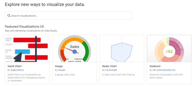 Ici aussi, certains composants sont conçus par Google, d’autres par les utilisateurs de Looker Studio qui mettent à disposition leurs créations.