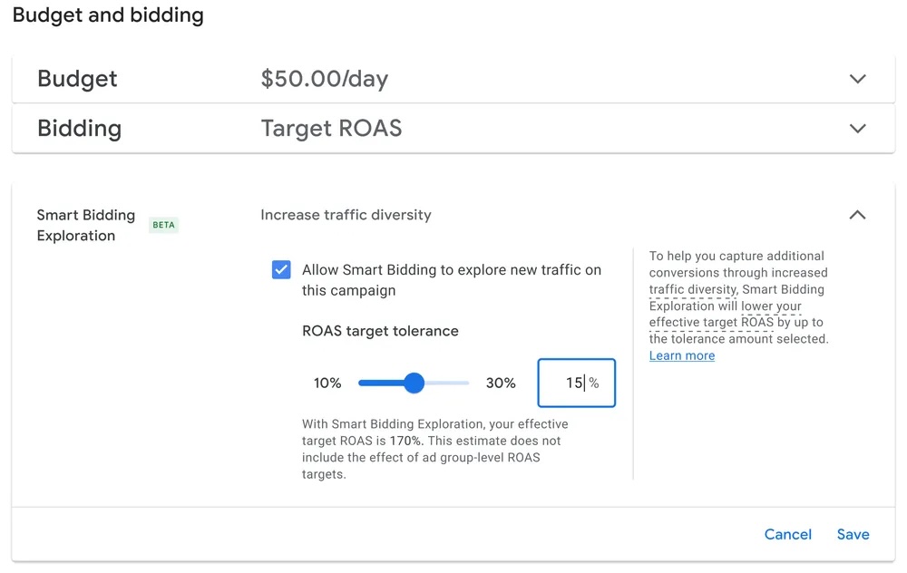 Pour faire simple, cette fonctionnalité s’appuie sur la suite d’outils AI Max, tout juste lancée, et introduit des objectifs ROAS (Return on Ad Spend) « plus flexibles », explique la firme. Grâce à cela, l’IA de Google peut élargir le ciblage au-delà de requêtes traditionnellement jugées « performantes et fiables » pour miser sur des requêtes « moins évidentes mais potentiellement très porteuses ». L’objectif : capter une demande inexploitée que les marketeurs n’auraient pas forcément identifiée avec des objectifs ROAS plus rigides.