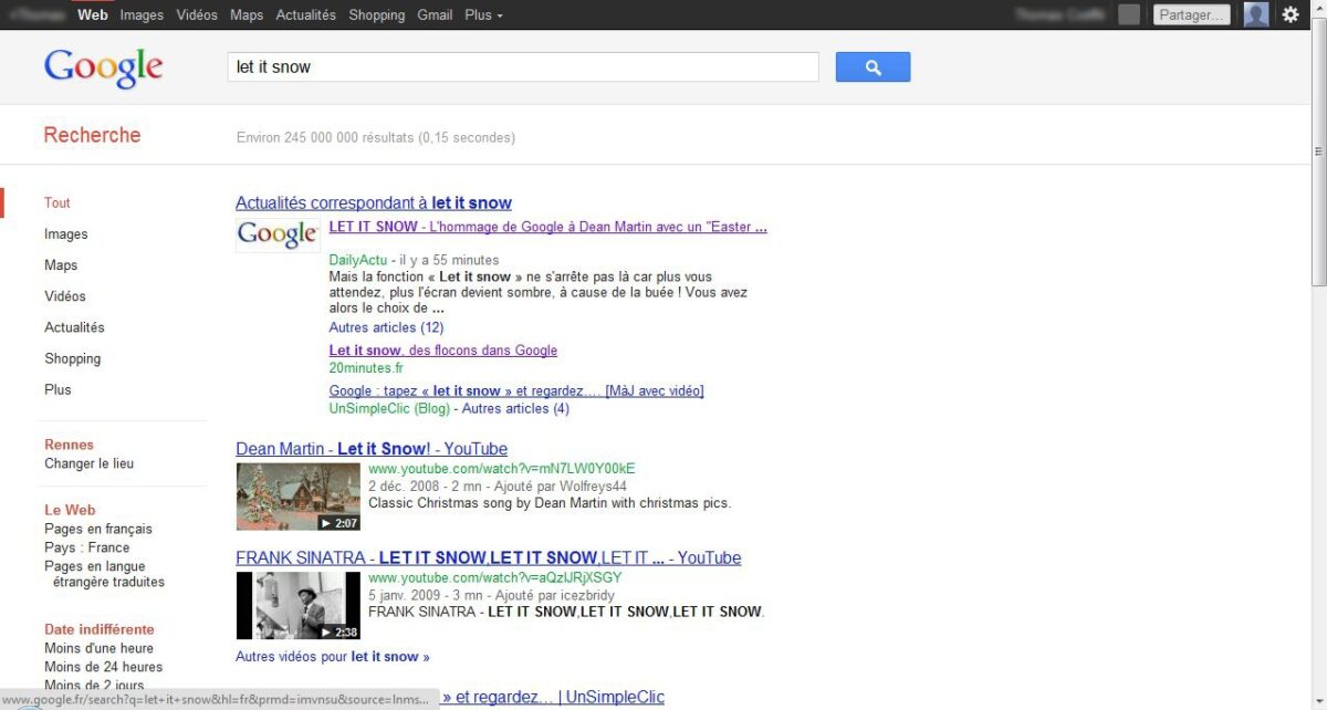 Let it snow sur Google