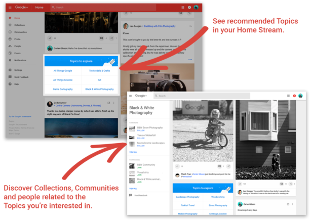 Nouveauté Google+ : les sujets à découvrir