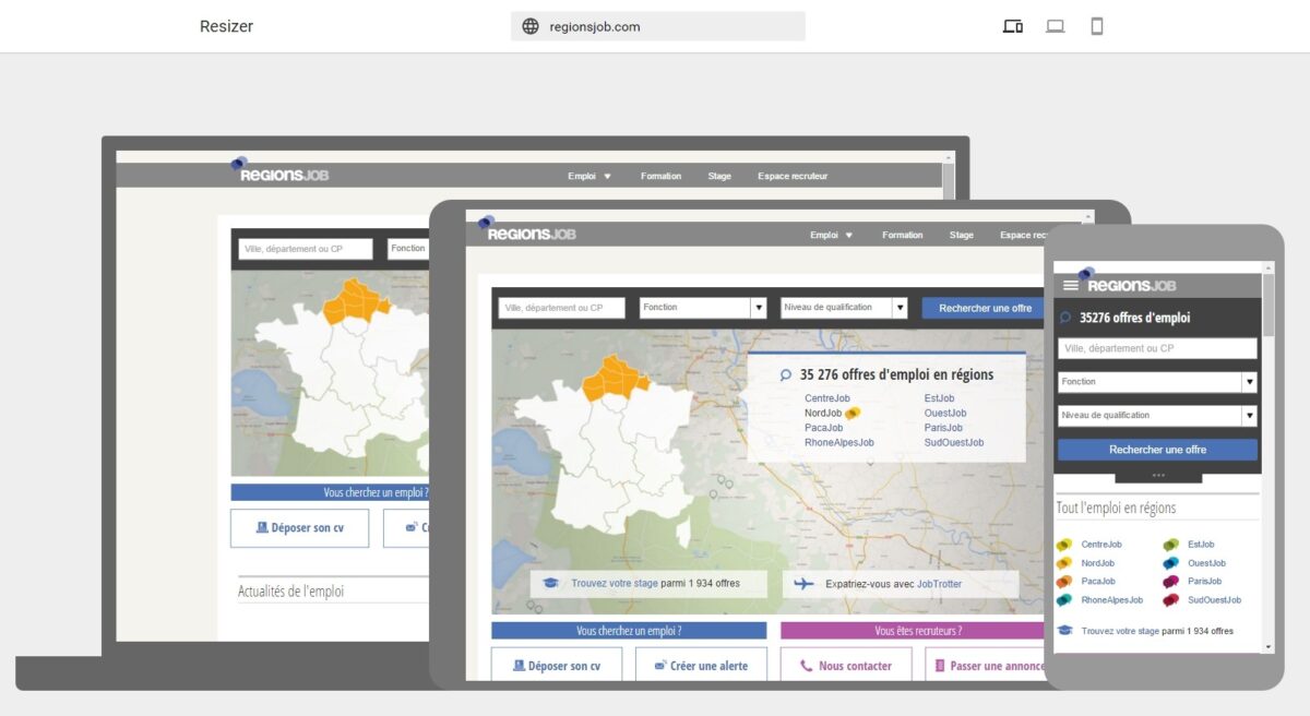 Il s’agit résolument d’un outil simpliste pour tester le rendu d’un site sous toute résolution. Pour commencer, il suffit d’indiquer l’adresse URL du site à tester. Il s’affiche alors en trois résolutions classiques sur desktop, tablette et mobile.