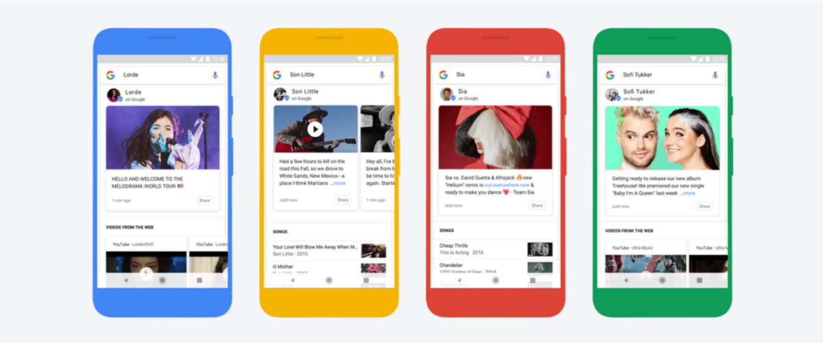 Les fans d’artistes comme Lorde, Sia, Son Little, Sofi Tukker, Shakira ou encore Kygo pourront désormais obtenir les dernières actualités en date directement de leur idoles. Avec la nouvelle fonctionnalité de Google Search, les musiciens ont en effet la possibilité de mettre à jour leur « Knowledge Panel », ce bloc d’information qui apparaît quand l’on recherche des artistes.
