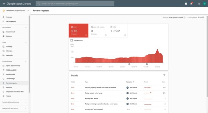 Si vous résolvez un problème dans la Search Console, vous pouvez utiliser ce rapport pour valider votre modification, ce qui déclenchera le nouvel examen de vos pages par le bot de Google. Google précise que son rapport couvre tous les types de contenu actuellement pris en charge en tant que résultats enrichis.