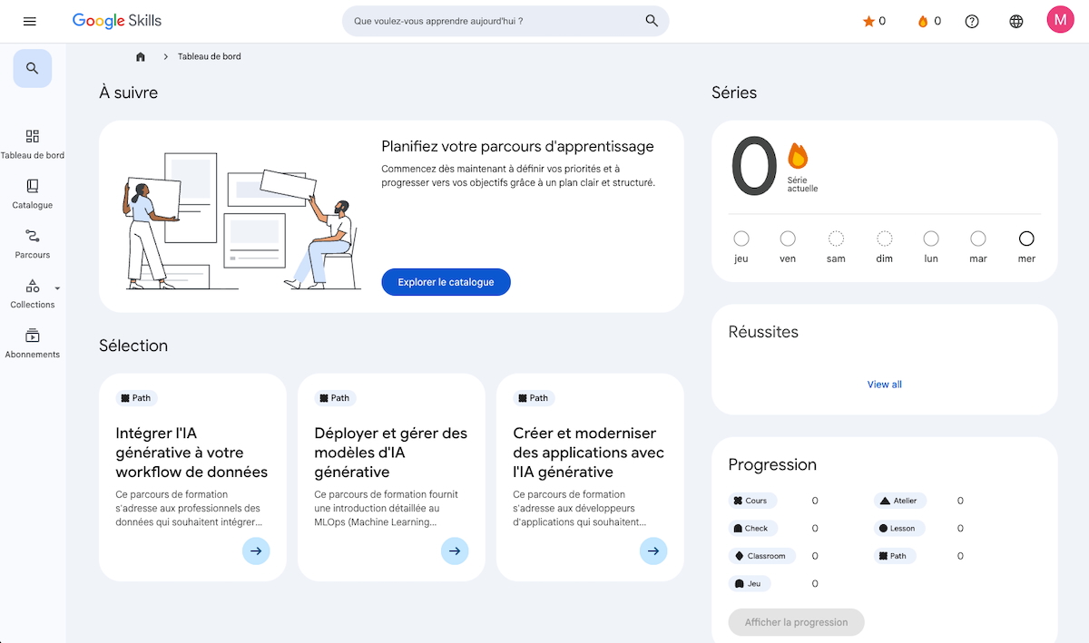 Google Skills est une nouvelle plateforme dédiée au développement des compétences en intelligence artificielle et bien plus encore, conçue pour offrir de nouveaux outils à l’ensemble de la population active. Que vous soyez étudiant et débutiez tout juste, développeur expérimenté souhaitant certifier vos connaissances, dirigeant cherchant à intégrer l’IA dans votre entreprise, ou dans toute autre situation, vous pouvez apprendre et valoriser vos compétences sur la nouvelle plateforme d’apprentissage de Google.