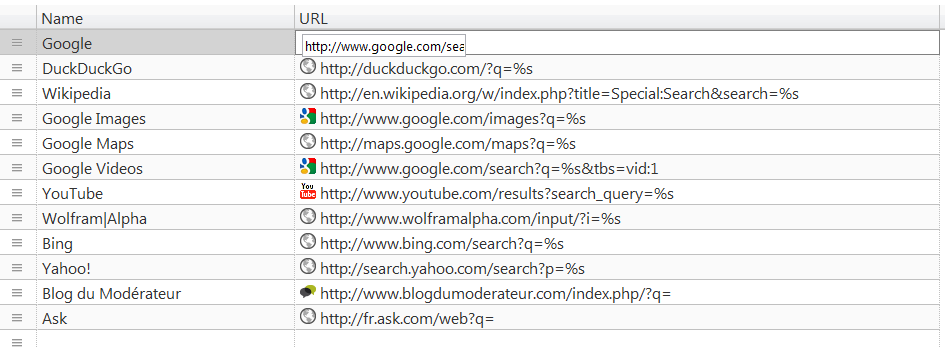 Autre avantage, vous pouvez vous-même ajouter des sites à la liste de ceux supportés par la recherche vocale. Pour cela, rendez-vous dans les options du plugin (clic droit sur l’icône micro en haut à droite) et ajoutez simplement l’URL de recherche (exemple : http://www.google.com/search?q= pour google) et ajoutez %s à la fin de l’URL (http://www.google.com/search?q=%s pour le précédent exemples). Le tour est joué, vous pourrez désormais utiliser l’extension sur ces sites.