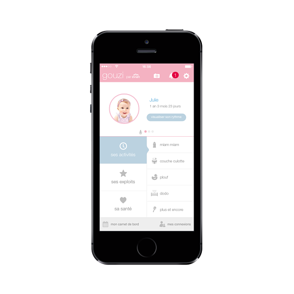 VV : Gouzi est une application mobile qui simplifie l’organisation, le suivi et le partage de toutes les aventures de votre bébé. Concrètement l’application permet de connecter tous les proches de votre bébé, afin de partager en temps réel différents types d’informations : qu’a-t-il bu ou mangé, et dans quelles quantités ? A-t-il assez dormi ? Quand a-t-il été changé pour la dernière fois ? Doit-il prendre son bain aujourd’hui ?