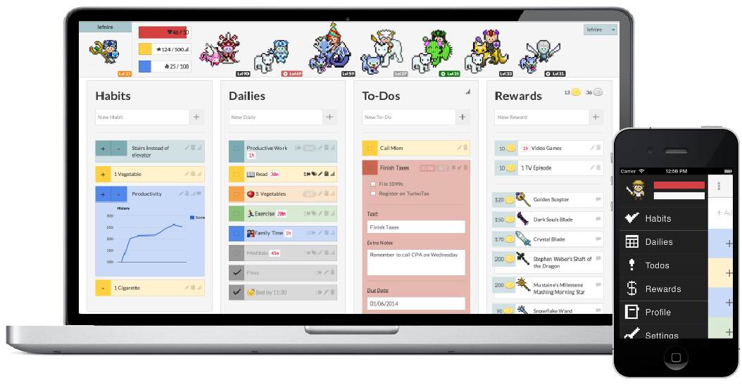 Sous ses airs de jeu, HabitRPG est très puissant : vous pouvez attribuer des étiquettes aux tâches, filtrer les tâches, les décomposer, les commenter, leur affecter un niveau de difficulté, une date butoir, et visualiser les tâches accomplies. Des applications Android et iOS sont disponibles gratuitement. Des fonctionnalités sociales immergent l’utilisateur au sein d’une communauté de joueurs, qui peuvent s’unir en équipe ou en guilde. Et bien-sûr, vos tâches et récompenses restent totalement confidentielles. Bref, si vous en avez marre des interfaces froides et déprimantes, n’hésitez pas à tester HabitRPG ! C’est totalement gratuit, mais vous pouvez opter pour une formule à $5 mensuels pour supprimer les publicités et débloquer quelques fonctionnalités.