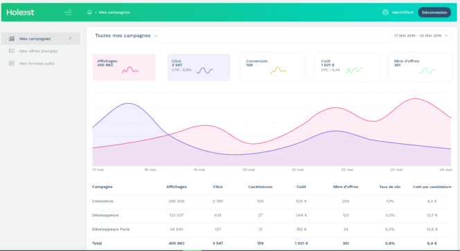 Yohan Monfort : Holeest est une solution de ciblage et d’optimisation, les algorithmes qui le composent ont été entrainés pendant 18 mois sur de gros volume de données. Pour être vraiment efficace, il lui faut un volume d’offres important et donc un budget alloué par client suffisant. Cela correspond aujourd’hui majoritairement à des grands comptes ayant plusieurs centaines ou milliers de recrutements par an. Nos data engineers travaillent actuellement sur l’évolution de notre technologie pour répondre à des entreprises de taille plus modeste très prochainement.