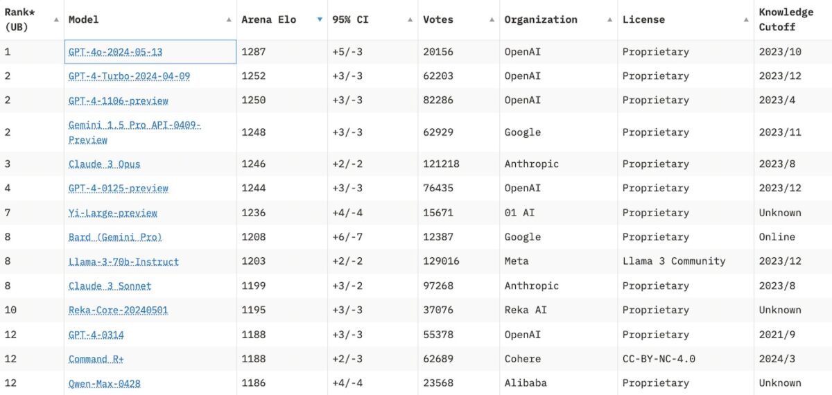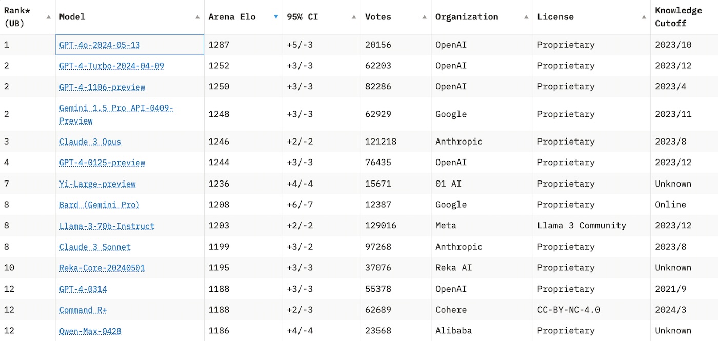 Découvrez, ci-dessous, le classement des grands modèles de langage (LLM) les plus performants en mai 2024 :