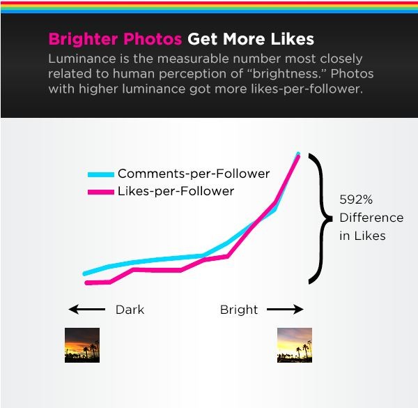 - Les couleurs froides et les photos claires rapportent plus de likes.