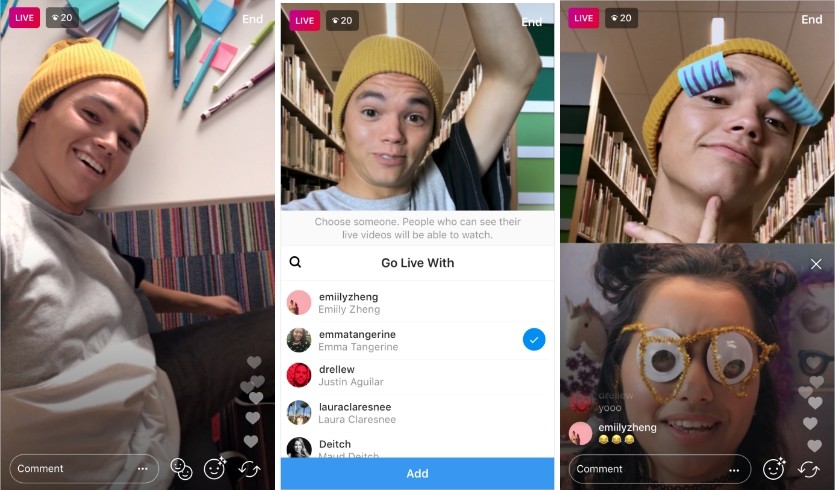 Nouveauté Instagram : faire un live avec un ami en écran partagé