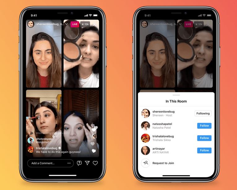 Instagram lance Live Rooms : jusqu’à 4 utilisateurs en direct en même temps