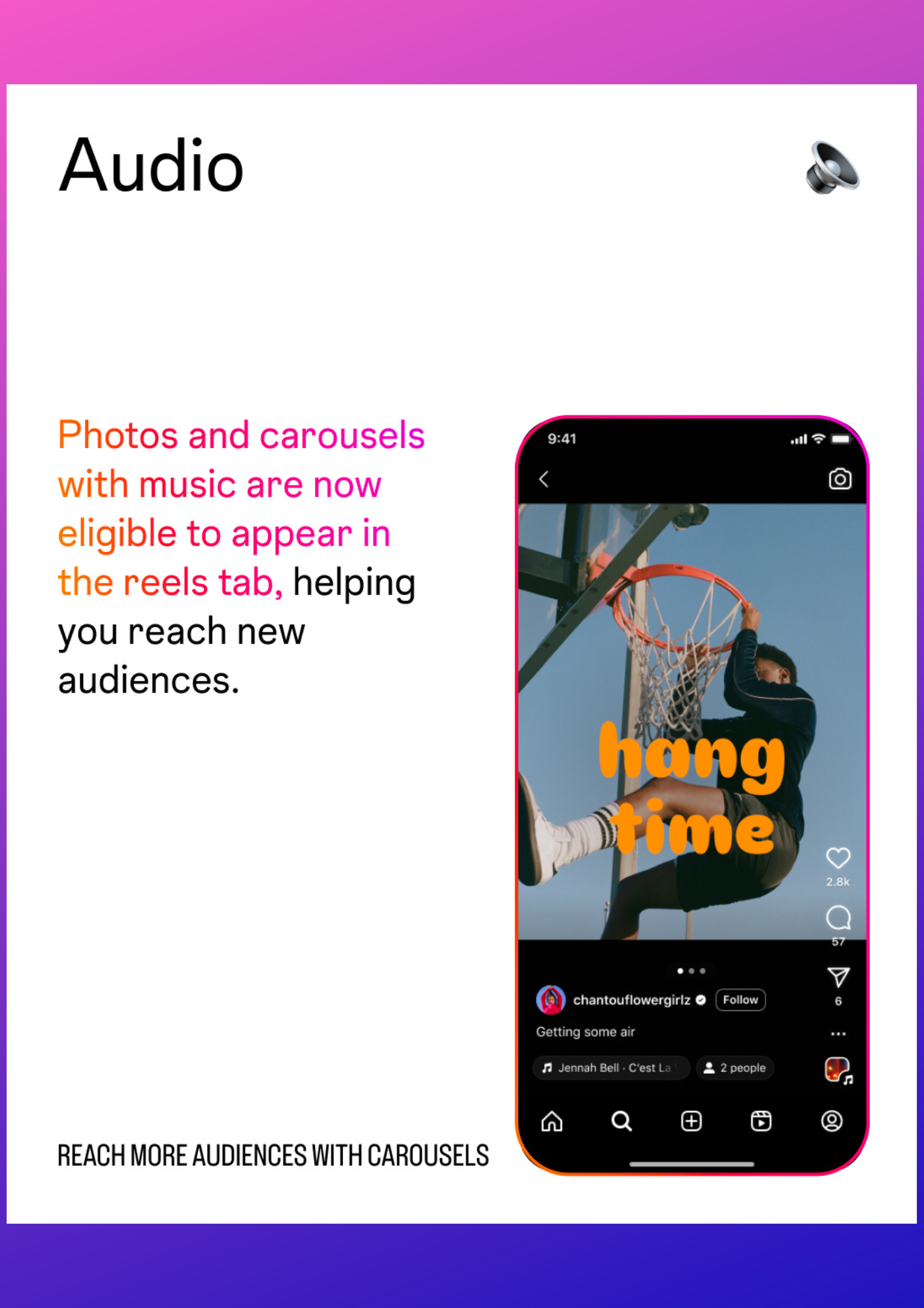 Instagram révèle que les carrousels et les photos contenant de la musique pourront apparaitre dans la section Reels de l’application. Dans un post publié sur Threads, Meta a annoncé que les carrousels contenant de la musique, du texte et un visuel « attrayant » seraient mis en avant pour atteindre une plus grande audience.