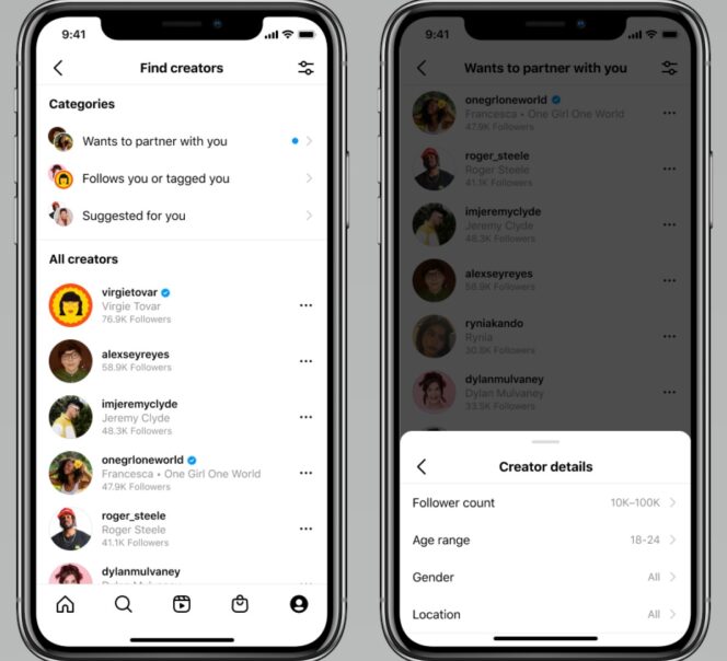 Instagram souhaite donner la possibilité aux créateurs d’ajouter les marques avec lesquelles ils aimeraient collaborer au sein d’une liste de marques favorites. Cette liste donnera aux créateurs plus de la visibilité lorsque des marques chercheront à créer de nouvelles collaborations. De leur côté, les marques bénéficieront de plusieurs catégories lors de leurs recherches pour réaliser des campagnes avec des créateurs : « Souhaitent collaborer avec vous », « Vous ont suivi ou vous ont taggué », « Suggérés pour vous ».