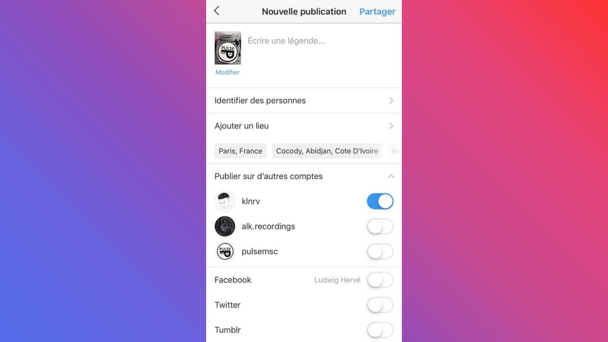 Publier une photo sur plusieurs comptes Instagram simultanément