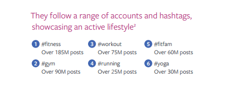 Au niveau des hashtags, la gym, le fitness et le workout sont les thèmes dominants, suivis par le running et le yoga. A noter que la moitié des 10 profils sportifs les plus suivis sur Instagram sont consacrés au running.