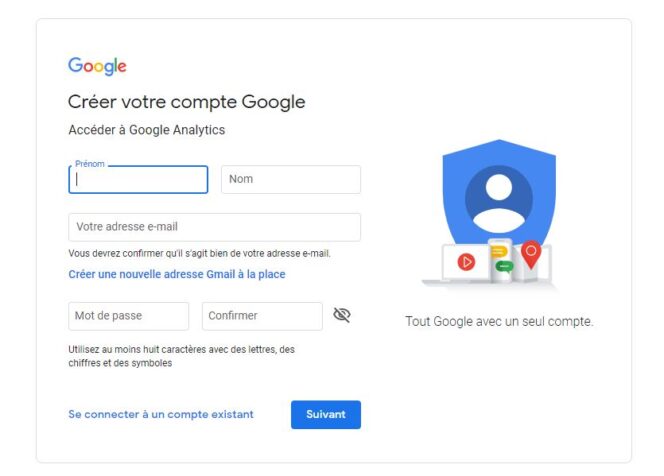 La première étape consiste à se créer un compte Google ou Gmail. Il n’est pas possible d’utiliser Google Analytics, sans création de compte préalable.