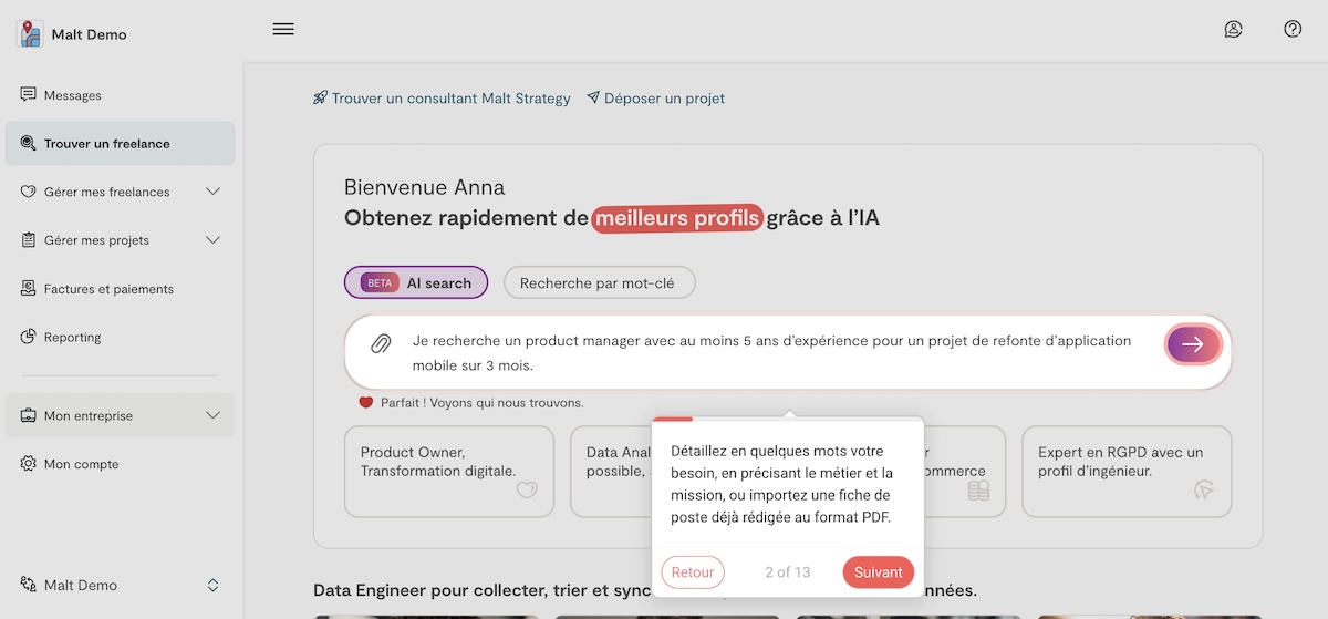 Pour moi, on ne peut pas avoir de confiance sans être transparent. C’est quelque chose qui peut être challengé, c’est certain. Mais c’est comme ça que je vois le développement produit, surtout sur des technologies qui posent beaucoup de questions, comme l’IA. Sur la thématique des biais, c’est très important. Le monde du recrutement est biaisé. De genre, ethniques, d’âge… Sur une marketplace comme Malt, on va les retrouver. C’était déjà une question avant les LLM : quel pattern amplifie-t-on quand on met du machine learning en production ?