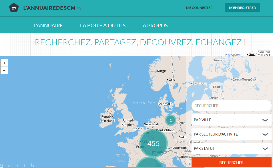 Cet annuaire est l’héritier d’un métier qui se structure de jour en jour. Chaque outil, chaque service, chaque CM de France et du monde aura enfin un lieu de référence où l’échange, le frottement et les connexions se feront de manière permanente. Le tout enrichi au maximum d’outils crowdsourcés, de partenaires techniques/event/RH/etc. Cet outil est le vôtre et c’est à vous de le faire vivre. Nous ne sommes que le terreau technique.