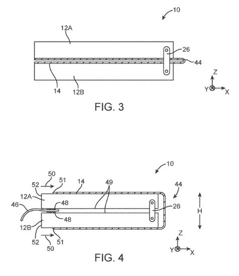Il s’agirait d’un brevet déposé en 2011. Les experts d’Apple l’avaient mis à jour en 2016. Ils viennent de réitérer la semaine dernière. Le brevet montre des schémas pour un smartphone avec un écran pliable. Le corps de l’appareil se plierait comme un téléphone à clapet tandis que l’écran serait flexible. Les brevets dévoilent deux cas de figure pour plier le smartphone : avec l’écran à l’intérieur ou avec l’écran orienté vers l’extérieur.