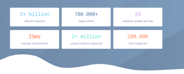 En ce qui concerne les données collectées et leur fiabilité, l’API d’Ipstack couvre plus de 2 millions d’emplacements situés dans plus de 200 000 villes à travers le monde. Le service se base sur des années de partenariat avec de grands fournisseurs d’accès à Internet, la garantie d’obtenir des données précises et fiables à n’importe quel jour de l’année.