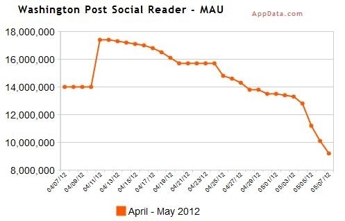 Le site BuzzFeed pointe du doigt les très mauvais résultats de différentes applications de Social reader au cours du mois dernier. Celle du Washington Post, premier journal à s’être lancé dans l’aventure, connaît en effet une chute pour le moins impressionnante.