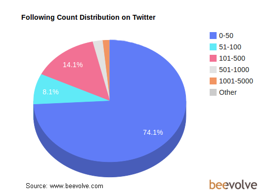 La grande majorité des utilisateurs suit moins de 50 personnes et possède autant d’abonnés. Il semble d’ailleurs que le nombre de followers et de followings soient fortement liés. Seuls quelques pourcents des utilisateurs ont plus de 500 followers.
