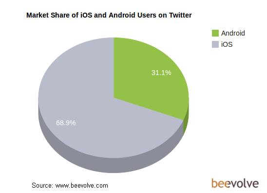 Les fanboys d’Apple ont visiblement tendance à plus utiliser Twitter que ceux d’Android. La différence est même significative, avec plus de 2/3 d’utilisateurs d’iOS. Parce que les fans de Google sont sur G+ ?