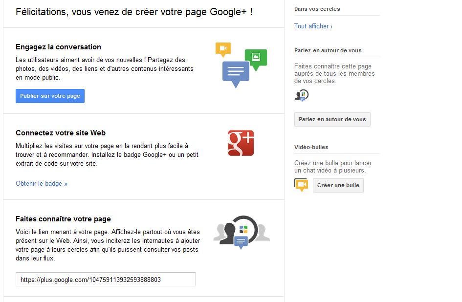 Vous pourrez ensuite commencer à partager : comme sur les comptes utilisateurs, photos et vidéos sont autorisées. Si vous publiez votre contenu en mode « Public », il sera visible par tout le monde. Les pages permettent « d’encercler », c’est-à-dire de suivre des utilisateurs, en les catégorisant de la façon suivante : clients, VIP ou membres de l’équipe. Vous pourrez donc choisir de diffuser certains contenus à l’un ou l’autre de ces cercles, à l’instar de ce que vous faites déjà avec votre compte personnel. Appliqué à l’entreprise, cela offre de jolies perspective en matière d’animation interne et externe ! Attention toutefois, à partir d’une page, vous ne pouvez pas « encercler » un membre si celui-ci n’a pas fait de même pour votre page auparavant. On imagine le spam potentiel que cela pourrait créer, sans cette condition de réciprocité…