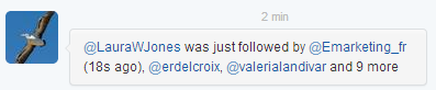 Ces DM semblent être peu touchés par le « bruit » présent pour Twitter, et seraient un excellent moyen d’avoir des recommandations sociales pertinentes et automatisées. Pour l’instant le compte a connu une très faible médiatisation et ne compte « que » 12500 abonnés. Mais vu l’intérêt du service et la mise en lumière du compte, celui-ci devrait très vite devenir viral. D’après le New York Times, Twitter chercherait à démontrer sa capacité à analyser les datas ainsi que le comportement de ses utilisateurs. Un moyen de rassurer les investisseurs potentiels quelques jours après l’annonce de son entrée en bourse…