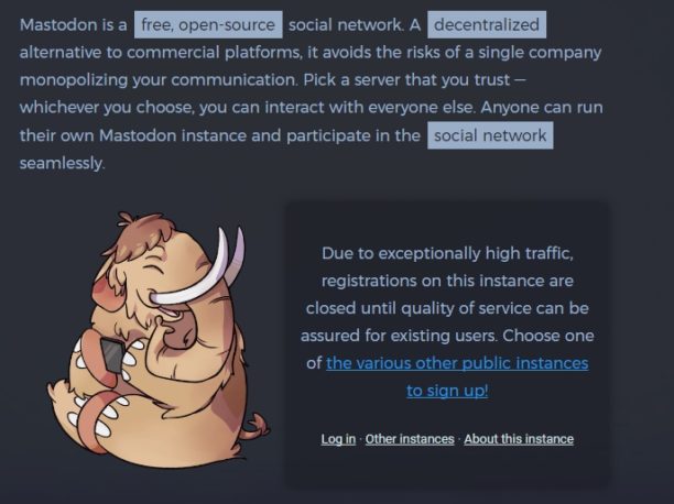 C’est évidemment très excitant, et totalement impossible dans cet écosystème de plateformes toutes puissantes où nous sommes tributaires des mises à jour. Mais pour que Mastodon ait une chance de se faire une petite place entre les Facebook, Twitter, Snapchat ou Instagram, il faut qu’il atteigne une masse critique rapidement. Pour l’instant, malgré son succès dans la presse, il faut bien avouer qu’il ne s’y passe pas grand chose. Mastodon revendique 42 000 utilisateurs, et ce chiffre est en pleine augmentation. Lancé en 2016, il explose depuis quelques jours gagnant des centaines d’utilisateurs chaque heure. Pour rappel, ce n’est pas la première fois que nous voyons ce type d’initiative. En 2012 app.net avait levé $500 000 pour… créer un meilleur Twitter, la start-up a finalement fermé en janvier 2017. Et sans jouer aux oiseaux de mauvais augures, on a du mal à imaginer un exode massif de Twitter à Mastodon. Le service peut par contre devenir une niche abritant des micro-communautés. Pour essayer Mastodon, rendez-vous sur ce lien, il vous suffit de choisir une des instances publiques pour vous inscrire.