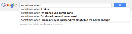 Parfois, quand on est seul, on fait des choses étranges… Au moins deux si on en croit ces suggestions : on se prend pour une carotte et on utilise du Comic Sans MS. On se demande ce qui est le pire.