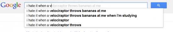 Dans la série des Google suggest qui n’ont absolument aucun sens, celui du vélociraptor qui lance des bananes est vraiment pas mal.