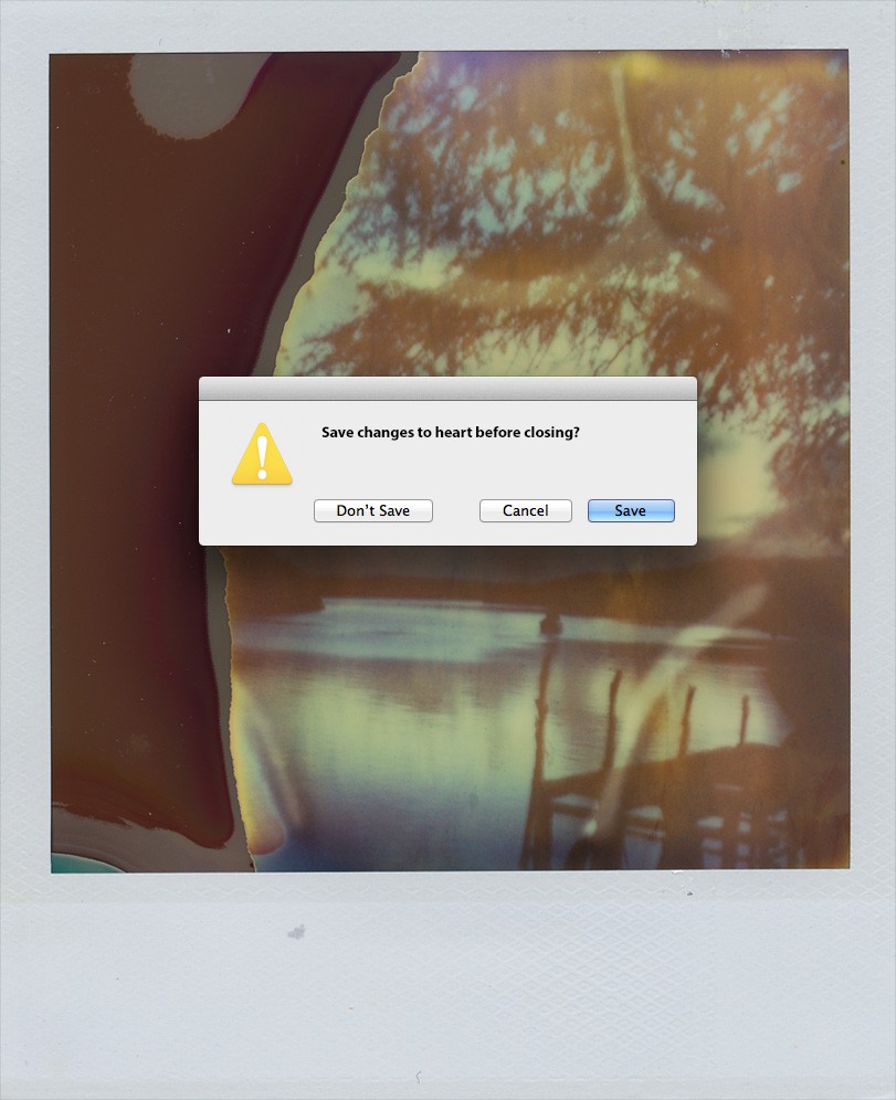 Les messages d’erreur (et d’avertissement) font partie de notre quotidien, si bien que nous les connaissons tous par cœur. Surtout les utilisateurs Windows, diront les mauvaises langues. Disque dur presque complet, confirmation de suppression d’un fichier, programme qui plante… Mais qu’est-ce que cela donnerait si ces messages s’appliquaient à notre vie quotidienne ? C’est ce qu’a essayé d’imaginer la graphiste de Brooklyn Victoria Siemer avec une série d’images intitulée « Human Error ». Elle y aborde nos émotions via des polaroids nostalgiques, notamment ces moments où l’on a le cœur brisé. C’est plutôt sympa et léger, même si certains y trouveront forcément un côté mièvre.